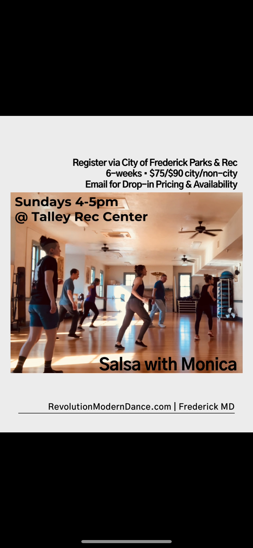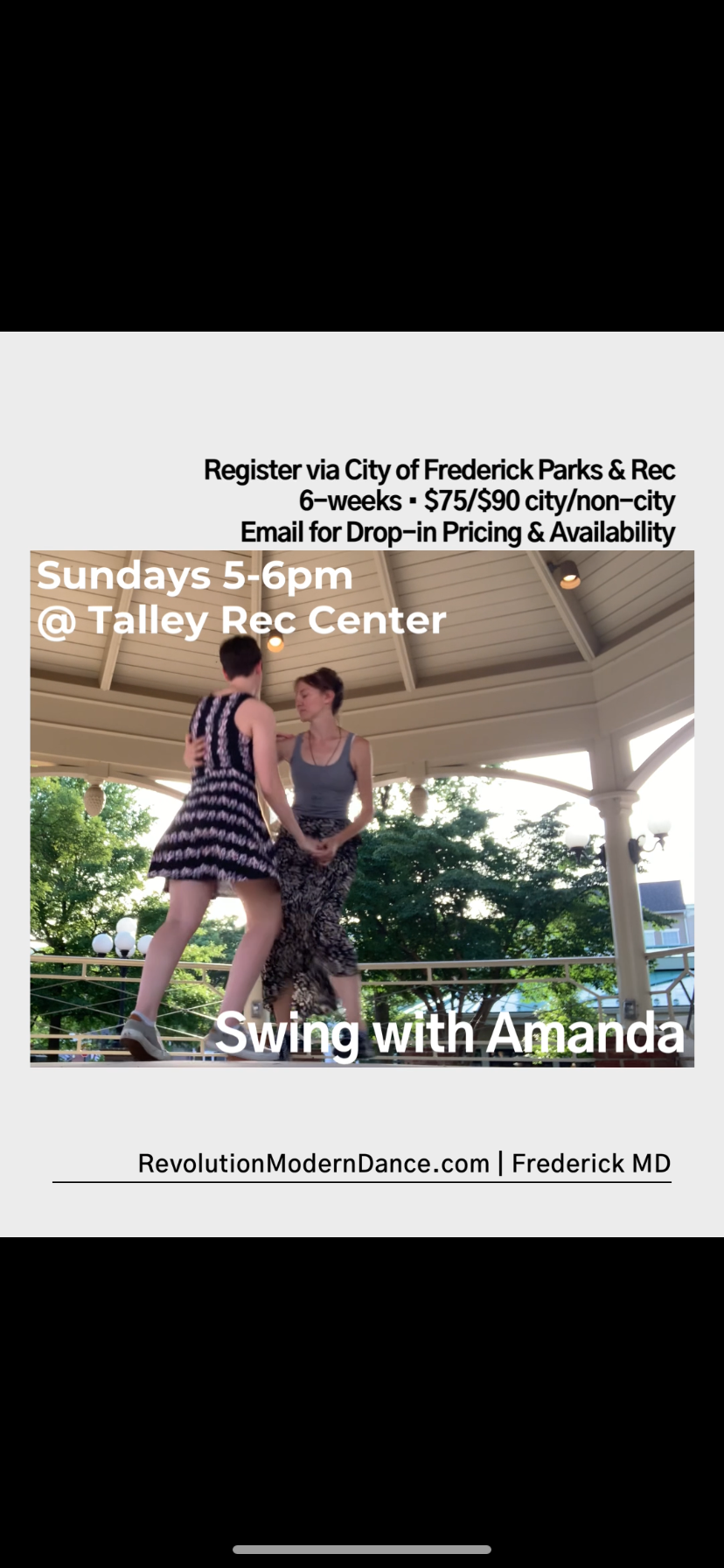 Social Categories: All Weekly Social Modern Yoga Social All Weekly Social Modern Yoga Blues Dance - Weekly Group Lessons at New Spire Arts from $15.00 West Coast Swing - Weekly Group Lessons at New Spire Arts from $15.00 Salsa - Weekly Group Lessons via City of Frederick Parks & Rec $0.00 Swing (Lindy Hop) - Weekly Group Lessons via City of Frederick Parks & Rec $0.00 Sky Stage Swing Dance from $0.00